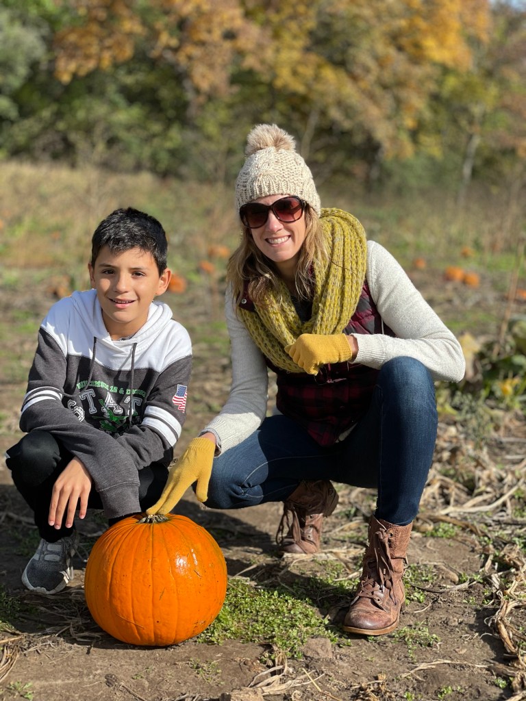 It was really a beautiful morning out on that farm!! I am soooooooo glad we didn’t go earlier in September/October when it was hot and summer-like. The crisp air on Friday was just perfect. (Also- I highly recommend going on a no-school weekday, versus the crazy busy weekend. We have done this in the past and it’s always been great.)