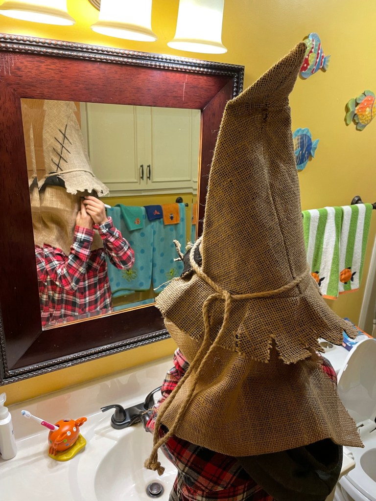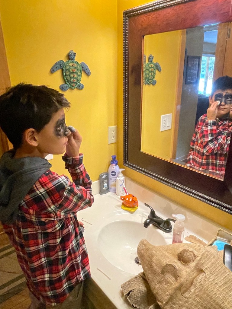 Asher did a trial run of his costume yesterday… I’ll post full pics tomorrow, but here is a sneak peek of him in process (minus a bunch of parts):