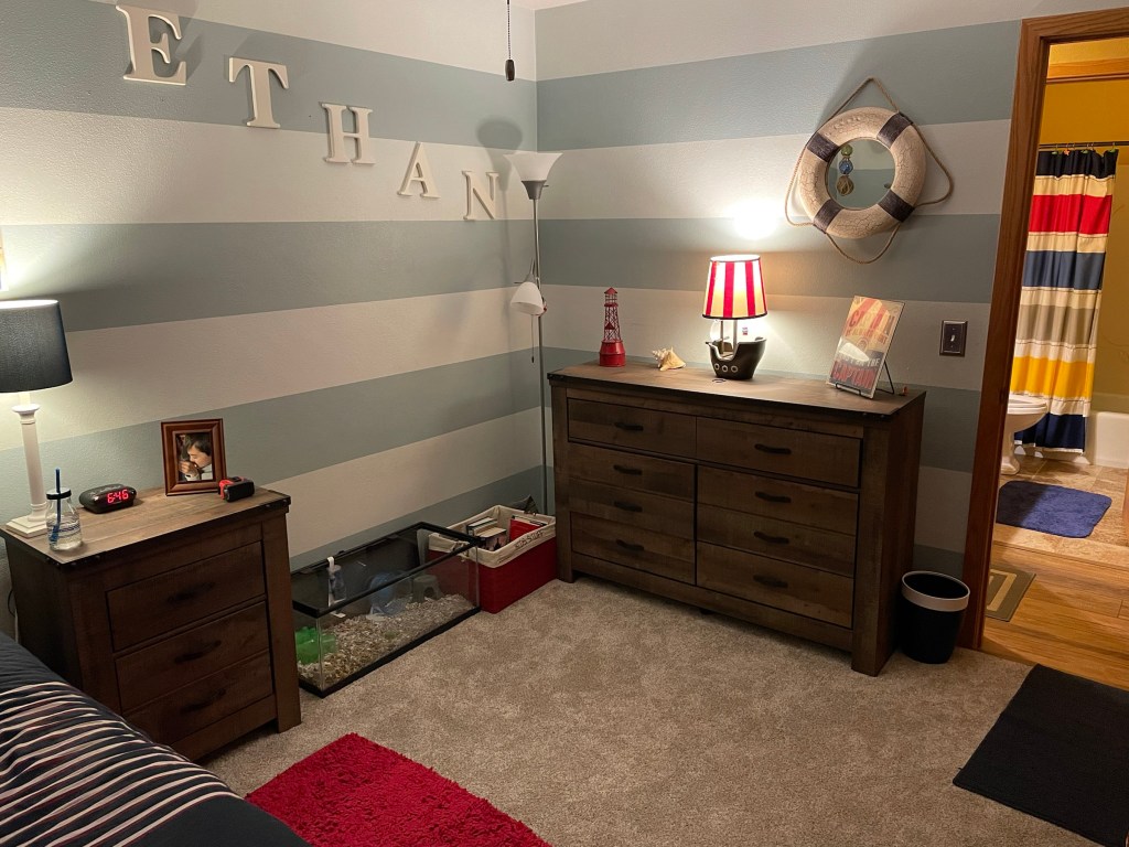Ethan is generally more minimalistic in all ways. I had mentioned something about needing to eventually look for some updated wall items for his room, and he kind of shrugged and said something like, “I don’t really need anything on the walls at all.” Haha! (If you recall, Asher had a million ideas of things for how he wants to decorate his room.)