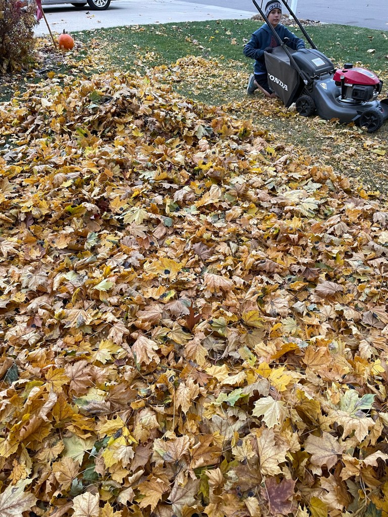 - Remember that pretty golden tree I posted the other day? Well, in about 24 hours it dropped >75% of its leaves. So the boys and I worked outside for 2 1/2 hours after school Wednesday cleaning all of that up. (Ivan spent ALL last weekend cleaning up the rest of our yard for fall…).