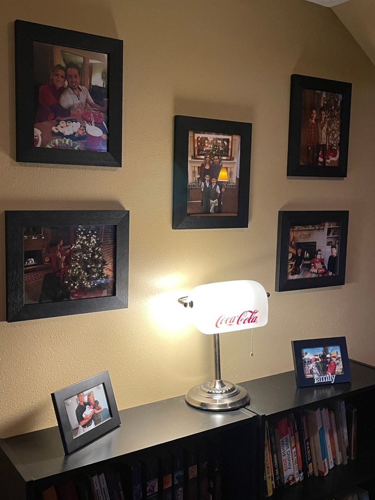 - I hung holiday pictures in my new frames in the basement! These are intended to display travel photos, eventually, but for the holiday season I ordered some past Christmas pictures. I walk past these frames about 20 times a day, so I’m loving this. 🙂