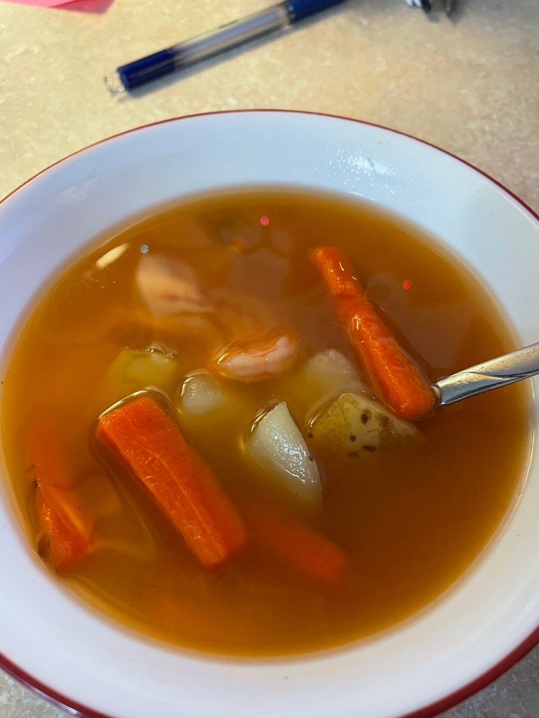 - Stir the red liquid into the soup (like I said- it’s not a lot, but it goes a long way. It will turn the liquid that reddish color.) TASTE it and then adjust seasoning- sometimes I add a little extra bouillon flavoring if it needs it. Let it simmer for a few minutes to mix the flavors well.