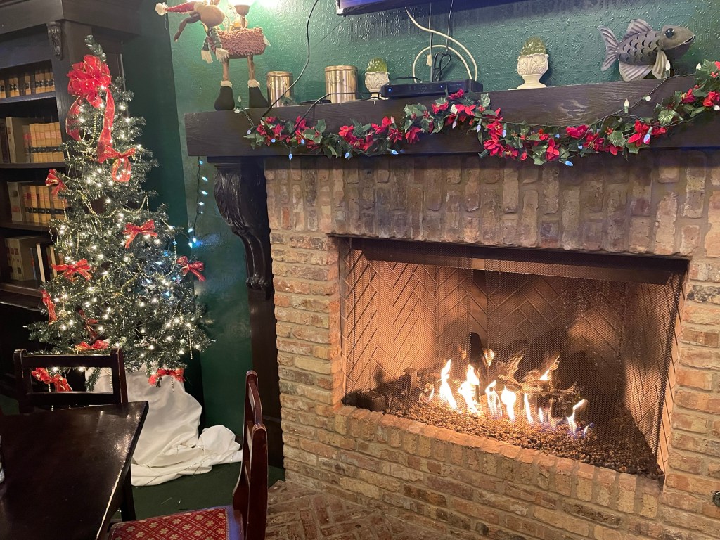 Pretty tree and fireplace at an Irish Pub we had dinner at after the meet on Saturday night: