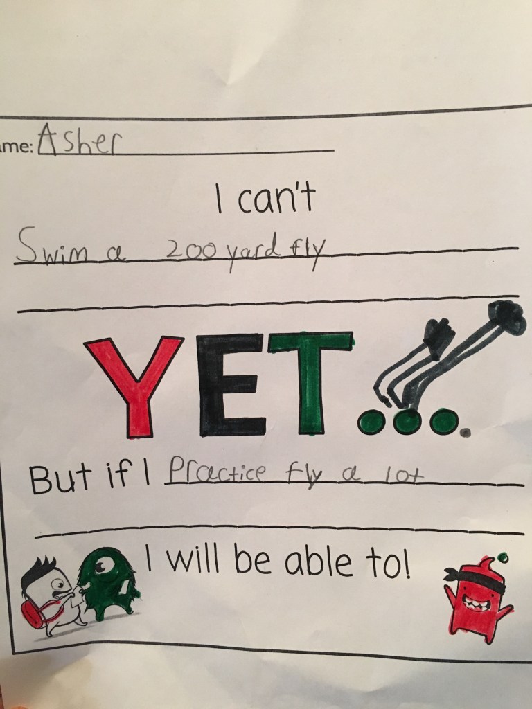 I knew when he made that project in 3rd grade that eventually he WOULD be able to do it (though it seemed almost impossible back when he couldn’t even swim fly for 25 yards). I posted it on Facebook and tagged his 3rd grade teacher (who happens to be a swim mom/ facebook friend). She loved seeing her former student actually meet a goal she helped him set!! ❤️