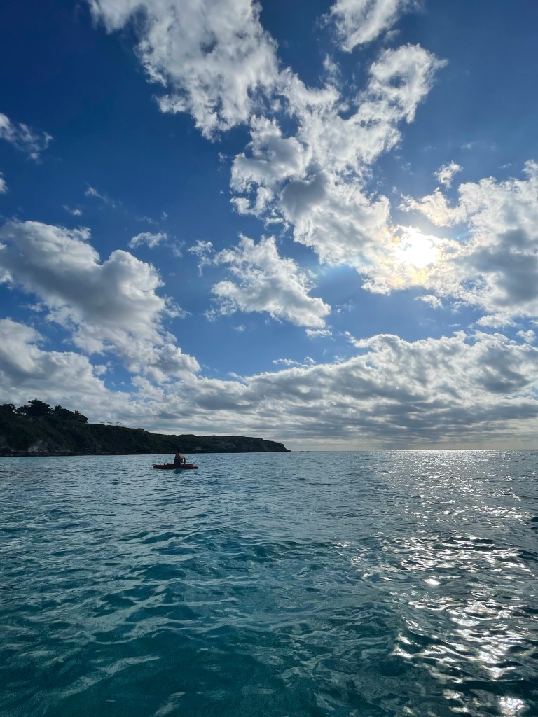 After docking the kayaks, we went out to swim for a little bit. The water is fairly cool this time of year, being January, unlike the VERY WARM ocean water I’m used to on our typical beach trips (Florida in August). Once we were in though, it actually felt really nice and refreshing. I’m glad we swam a little at least. 🙂 I was so tempted to just scoot off the kayak to swim while we were out there, because that clear blue water was just glorious, but a) I had my phone along…. and b) I didn’t totally trust my ability to not lose an oar OR 100% be able to get back up on my kayak! hehehe.