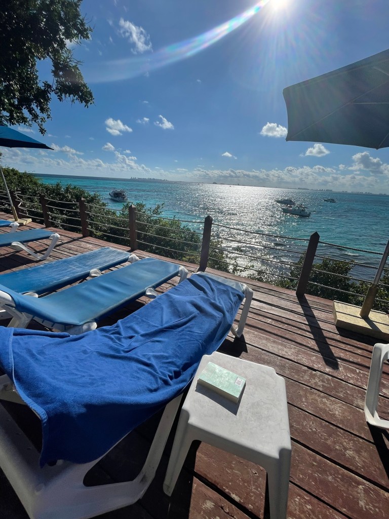 We alternated between the pool area and the deck overlooking the ocean. The same bartender was there, and like I mentioned, he and Ivan did a lot of chit chatting off and on. I guess that kept Ivan occupied while I read my book. 🙂