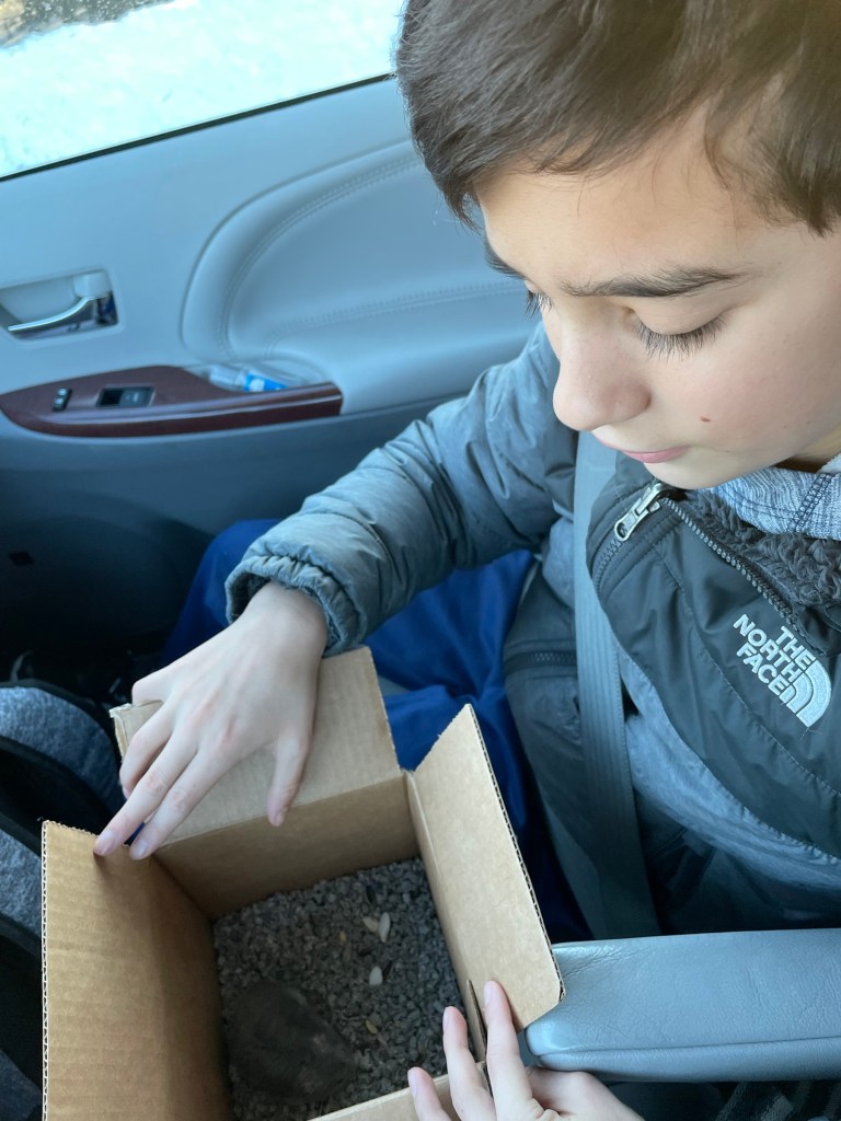 2- We had to take Ethan’s hamster, Flint, to the vet yesterday. 😦 We noticed one of his eyes was a little swollen and had some redness over the weekend. It took a few days to get an appointment with an “exotic pet” animal (hamsters are considered “exotic”, apparently). It was below zero temps outside yesterday, so I had to warm the car first and then Ethan raced out with him in a little box.