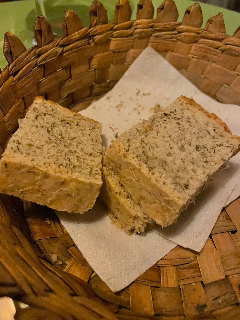 We ordered wine and they brought out some delicious, warm bread with some kind of eggplant/ olive oil mix to garnish the bread with.