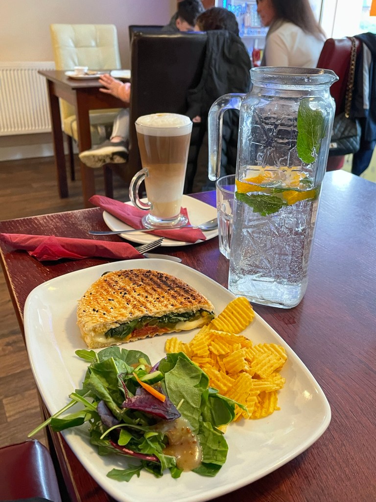 Asher got a fancy hot chocolate and shared a panini with Ivan: