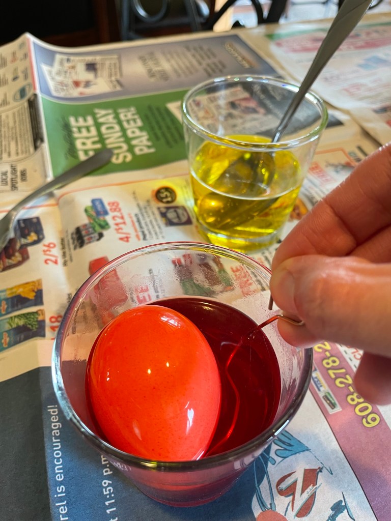 *After clean up, finally dyed Easter eggs: