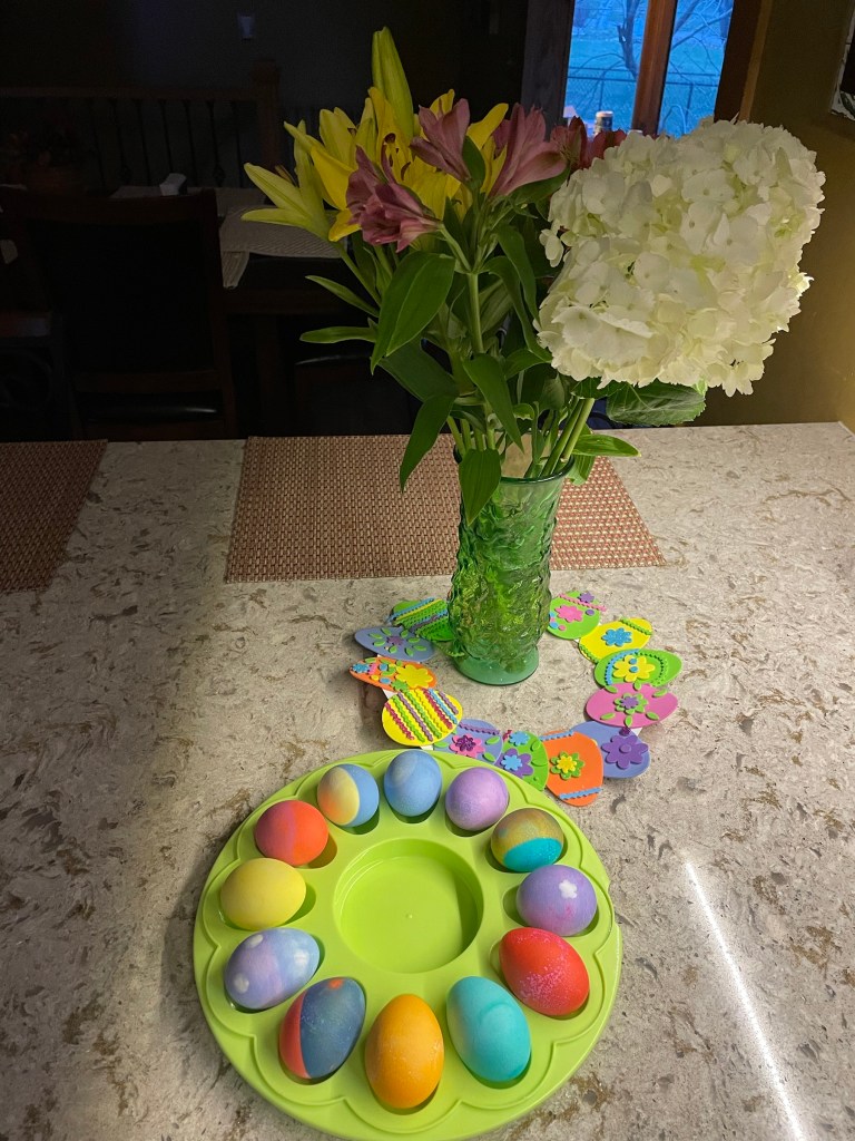 I am extremely not a fan of Easter either! I also am not religious in any way, so it all feels like a farce to do anything for this holiday. My parents and in-laws DO celebrate Easter, so typically we outsource all celebrations to them and do nothing on our own. The only year we did anything was 2020 because we were all in lockdown and it just was something fun to look forward to, but at that time my then-10 year old set EVERYTHING up, including an egg hunt and dressing up like a bunny (???) on her own 🙂 I’m in MN soooo yeah it was snowing yesterday/today.