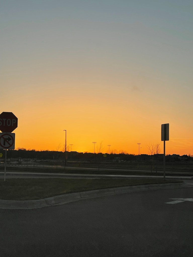 *Pretty sky. Pulling out of the parking lot after 7:45 p.m. soccer drop off, this was the sky: