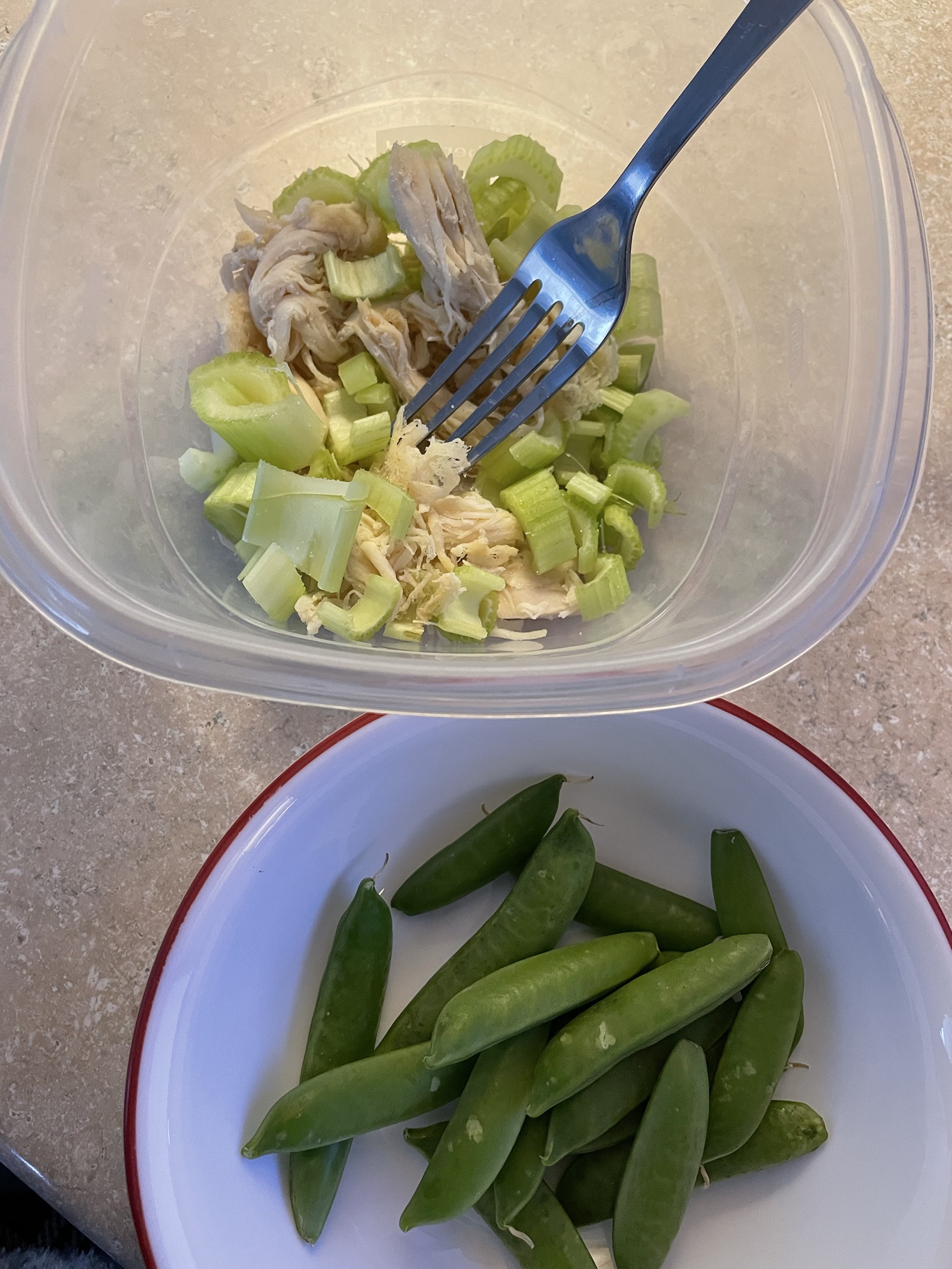 (Mix chicken/apple together, add some salt. Odd but tasty mix.)