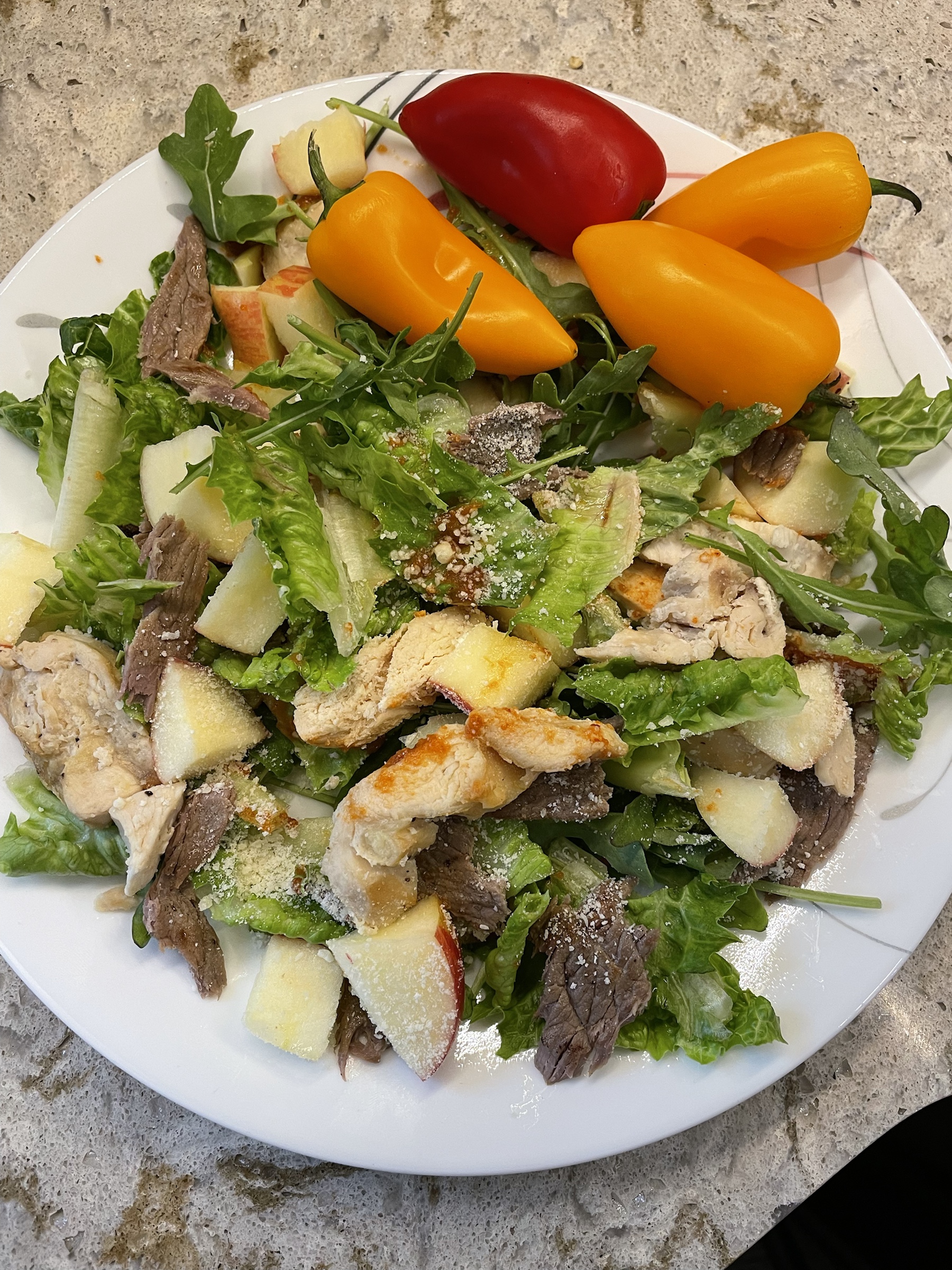 Lunch ~1:30 p.m. (post-lunch hour workout) – Chicken Tinga salad