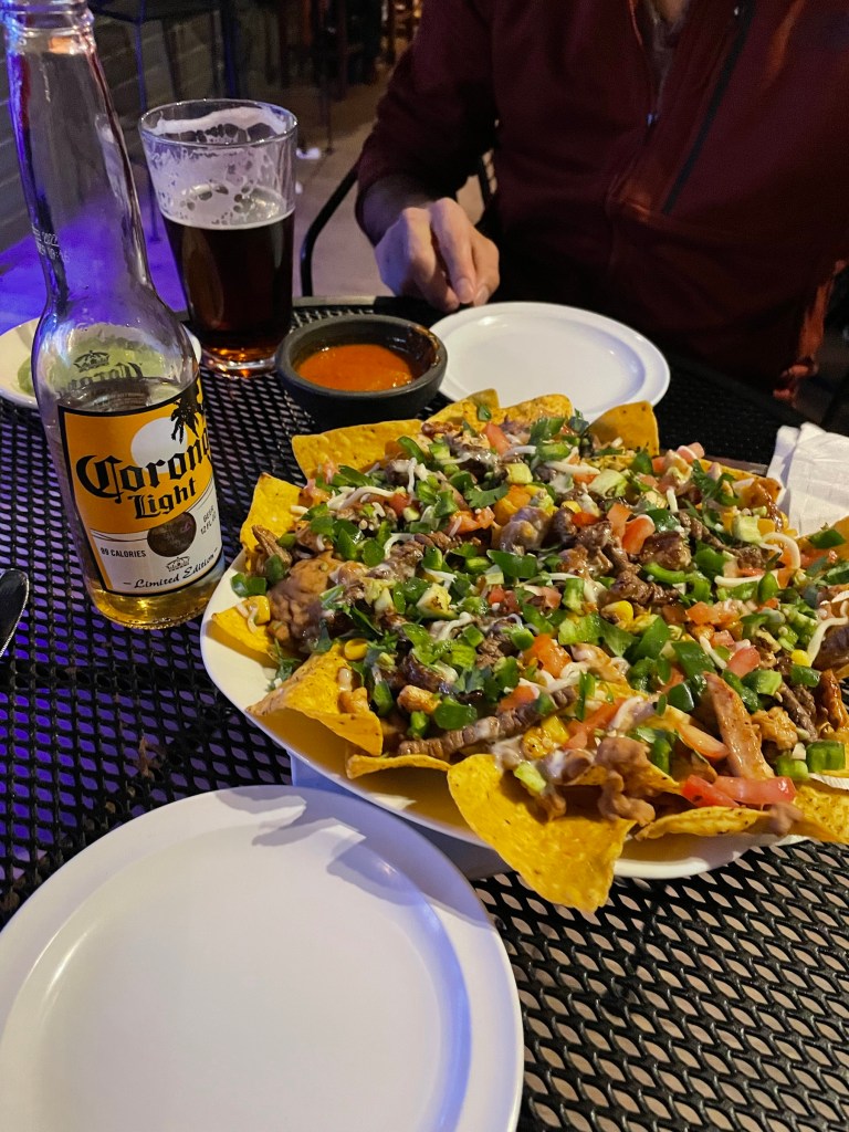 (We shared these nachos as our meal, and I just had 1 light beer. Plus some chips and salsa when we arrived- limited to a single basket between us!) Honestly, my calorie estimates were probably off on the nachos, but whatever. I’m not trying to be perfect with it.