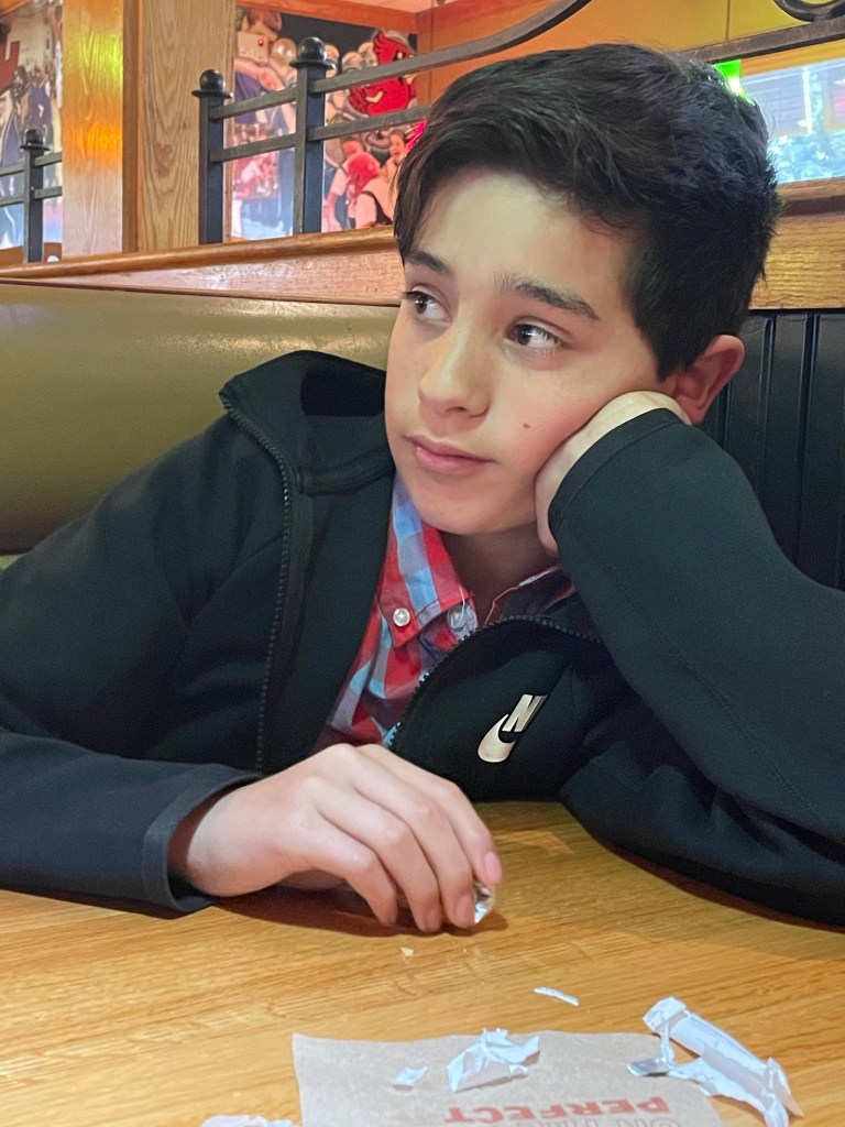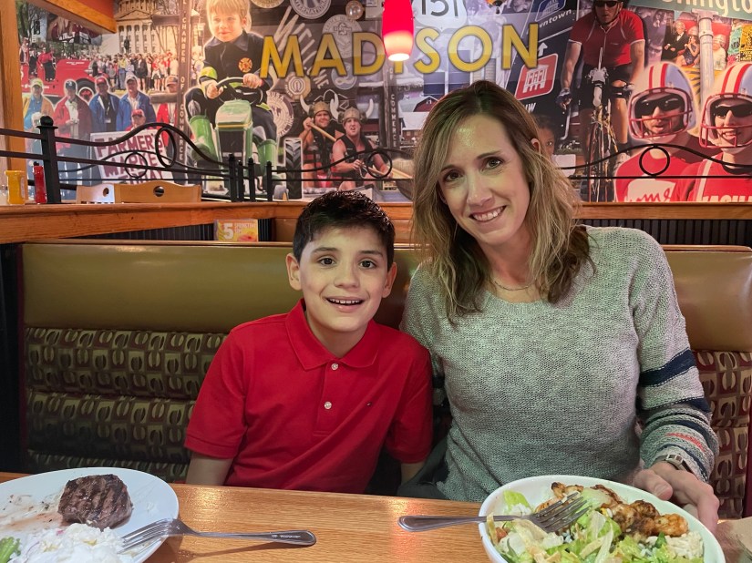 Post-show, we wanted to go get some dinner, but every place we tried had a long wait list (every place said it was due to staffing shortages….ughhh…..frustrating times all around). Finally we got in at an Applebee’s. Not our favorite place, but we were short on time before Ethan’s Sunday night tennis class. After stopping at a bunch of places, by this point we just needed to get in somewhere.