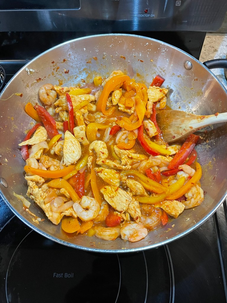 I did the little internal battle for a second, and then decided I did have time to make the shrimp dish and tabled the grilled cheese craving for another day. 🙂 +1- me, 0- the gooey bread and cheese.