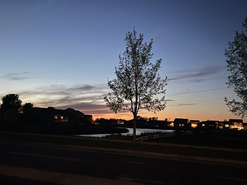 8- The boys asked to go for a quick walk before bed. It was almost 9 already, but I said sure. We just did a short loop around the block, but it was nice to connect with them. The sky was pretty too.
