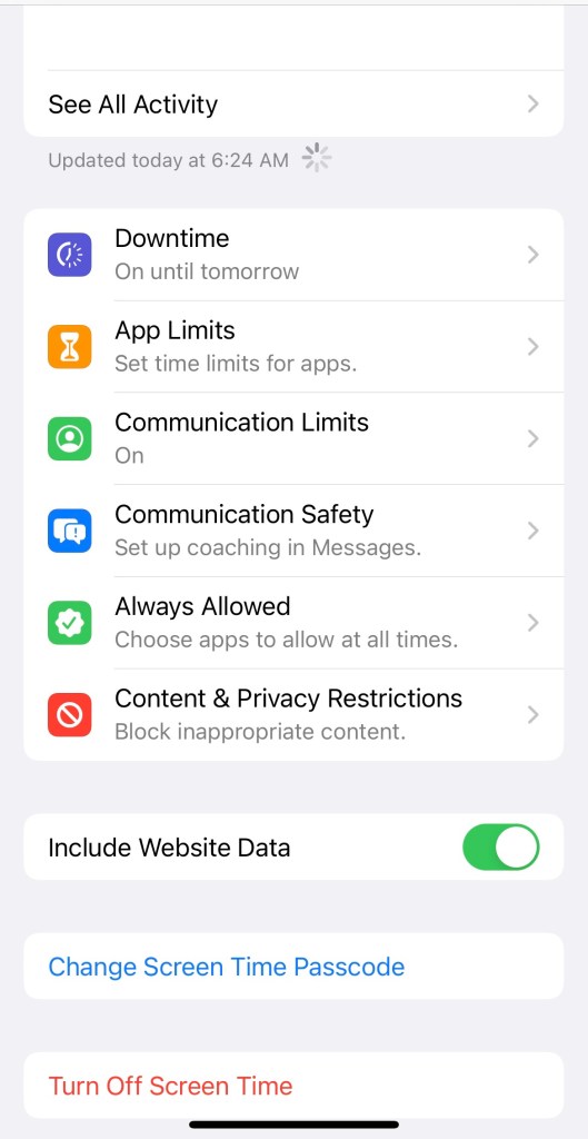 I do think the Downtime feature has lots of room for improvement. I wish it had options to set multiple schedules (currently can only set one recurring schedule, like for overnight use). For our purposes, we’ll have to do a lot of manual turning it on and off. (Apple, if you’re reading this, take note. 😂 What’s that? Apple people don’t read this blog?? Oh, fine then. 😜)