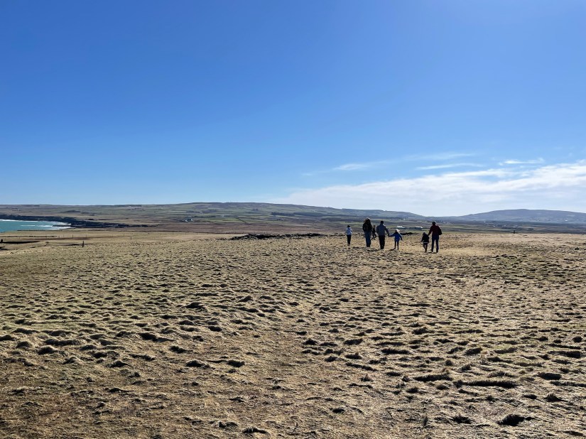 From here, we walked out along a big grassy area overlooking the water, out to the other side. This is a historical spot, but I honestly don’t know all of the details about it. According to a sign, though, there was an altar where St. Patrick used to pray here, as well as early ecclesiastical sites, a fort, and a WWII “look out post”. There are also many Irish folk tales that are based on this site.
