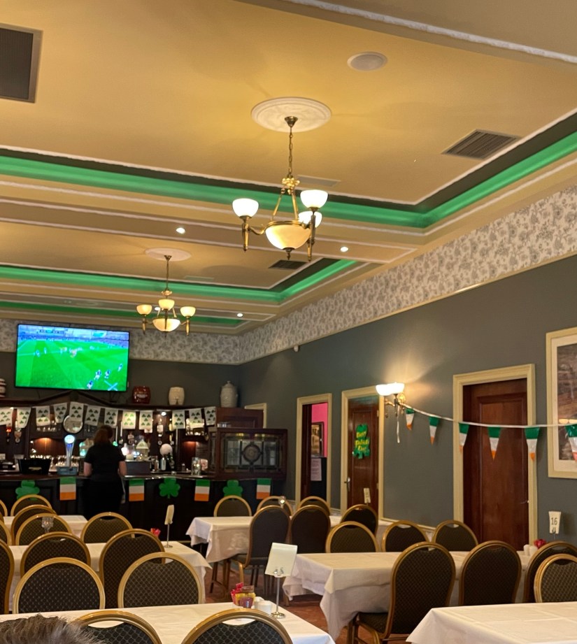 We had planned a sort of special dinner out at a place called Nevin’s, since it was our last night at my sister’s house! The restaurant set up a big table for us in their back room. Everything was still decorated from St. Patrick’s Day, so it was very festive in there.