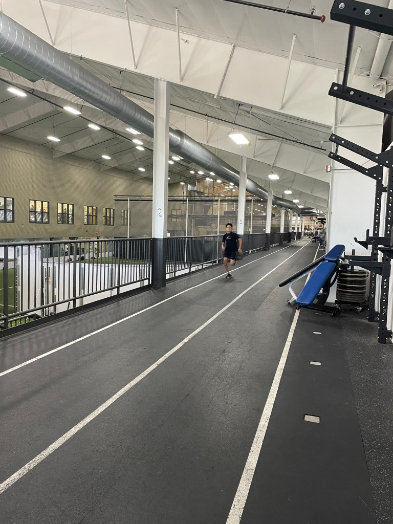 On Monday he wanted to do some sprints on the sprint track at the end. I did not, so I just sat on a bench and timed his sprints. 🙂