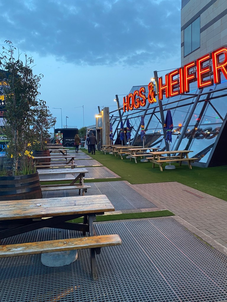 I had made sure there were some restaurants nearby when I booked the hotel. There was actually a very cool American style restaurant right next door called Hogs and Heifers.