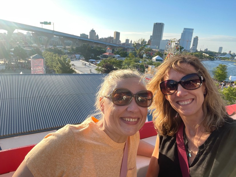 So when I heard the BSB were coming to Summerfest, I immediately texted my friend and was like, “OMG WE HAVE TO GO!!!” She actually lives in Milwaukee, but for some crazy reason, we had fallen mostly out of touch, besides Christmas cards and random Facebook comments. I had not seen her in almost 15 years, since my wedding in 2007! So the idea of reuniting with her AND seeing the Backstreet Boys again was too good to be true. She was 100% game and we bought tickets!