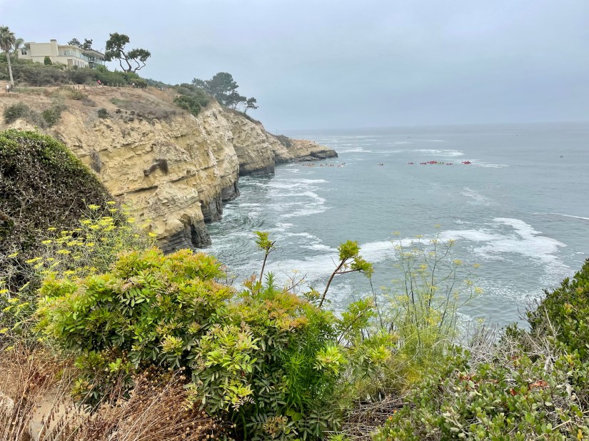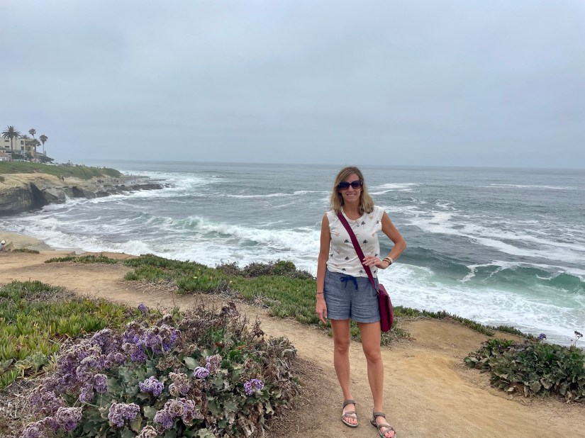 I was a little bit irritated with the cloudy skies!! The ocean is always so beautiful with sunshine and blue skies. Our Uber driver informed us though that the La Jolla area tends to always (or at least often) be the last place for the foggy/ cloudy skies to lift. It is what it is! Again- at least it was warm and dry. Two wonderful things on vacation.