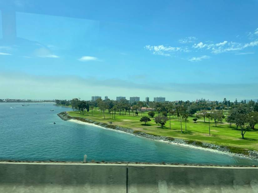 We took the free shuttle into Coronado, then the free bus to the ferry landing. From there (now closer to San Diego, by quite a few miles), we ordered an Uber. We probably saved like $15-20 by Ubering from there, instead of our hotel-at least based on our Uber estimates. There was a big Pride weekend occurring in San Diego with a parade and other events, so the city was busy and Uber prices were… not low. (I kept reminding Ivan that the trip was otherwise free, so who cares how much the Uber costs??, but he wasn’t having it. Still wanted to find the cheapest transport option we could. He always loves a bargain.)