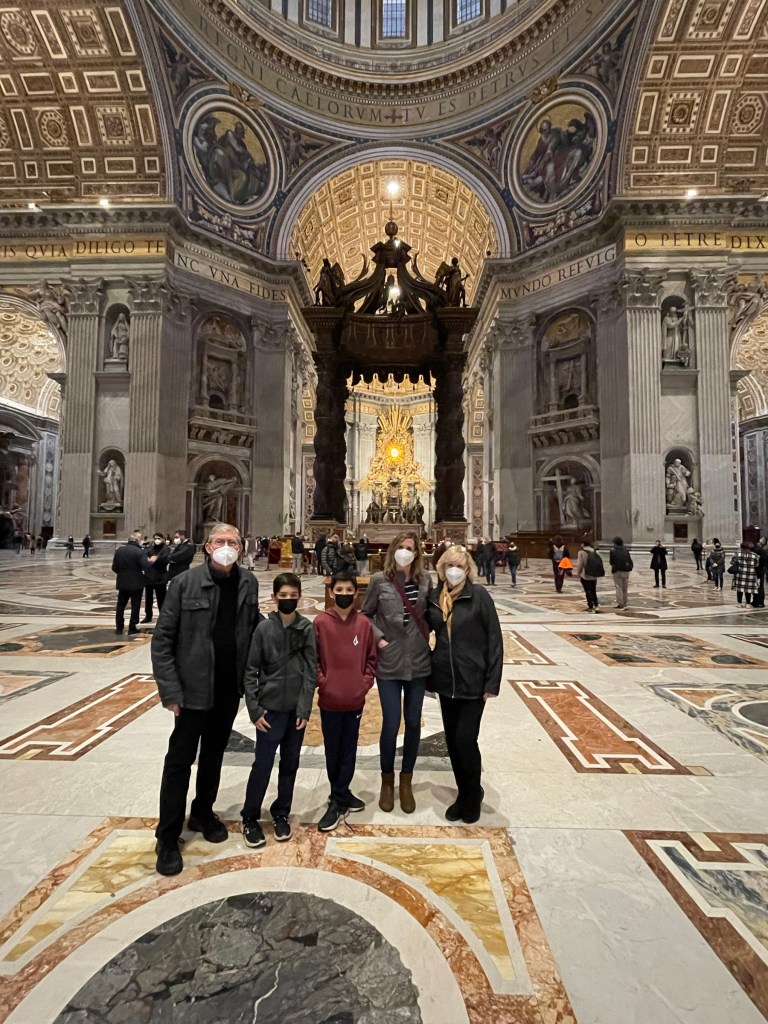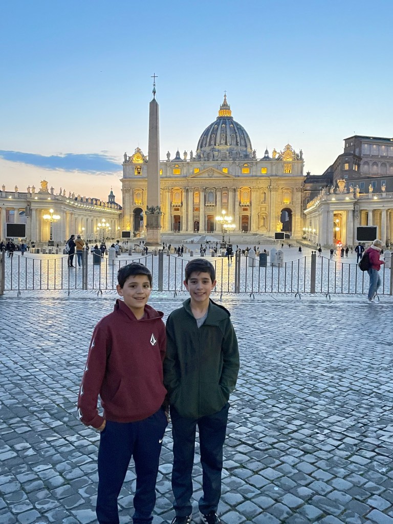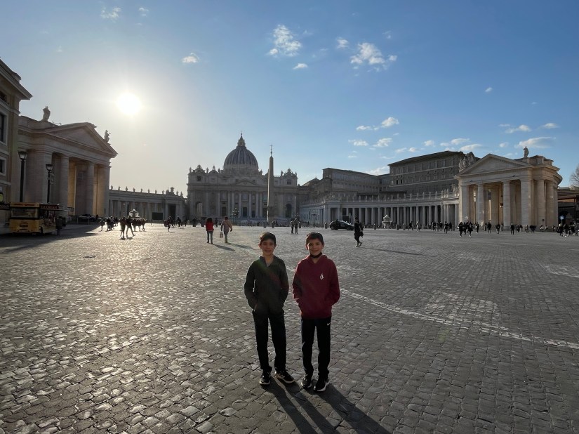 We tried to get in the security line, only to be told that our standard masks, which we wore on the plane and everywhere else, were not good enough for inside the Basilica. (For the adults- the kids were allowed to wear regular masks.) He said we could not enter.
