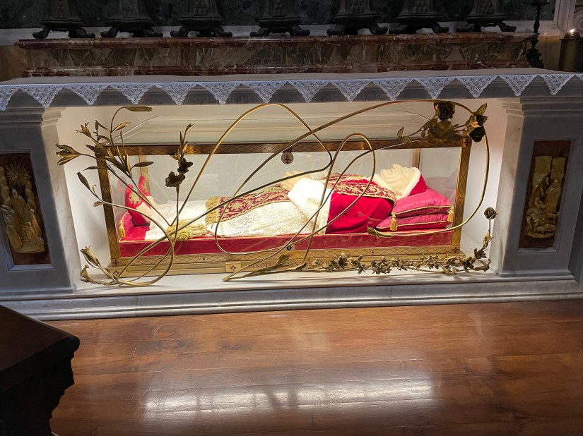 There are various shrines and chapels all around the outside ring of the basilica. Some past Popes are essentially mummified and buried there. Others have tombs below.