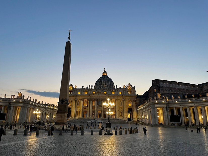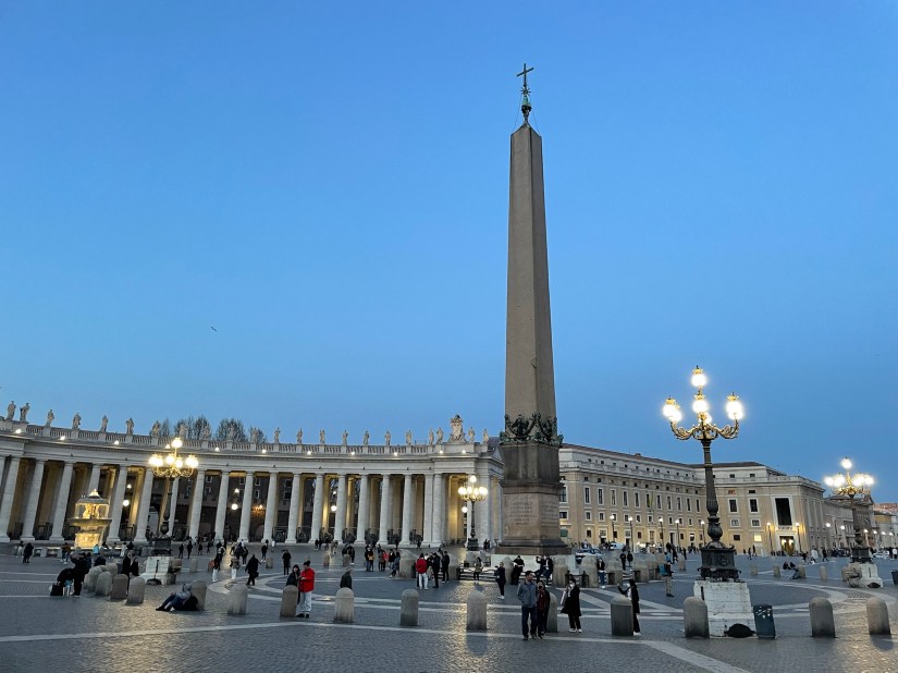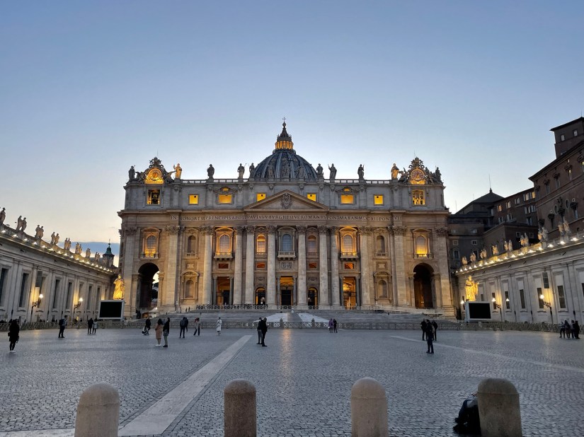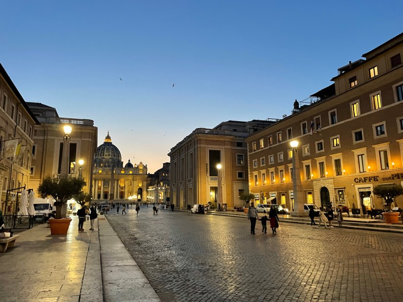 Here come my favorite pics of the night….the sun was setting, the lights were on in St. Peter’s Square….this was magical.