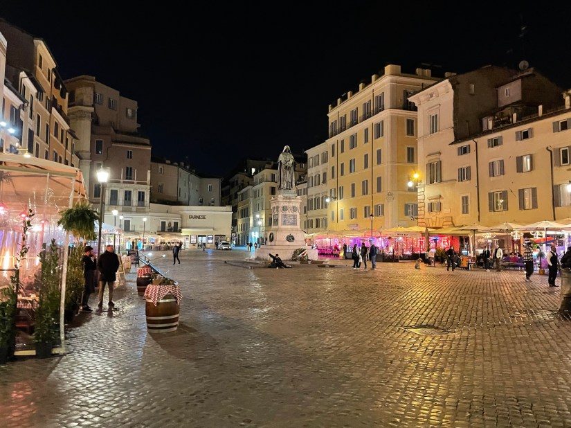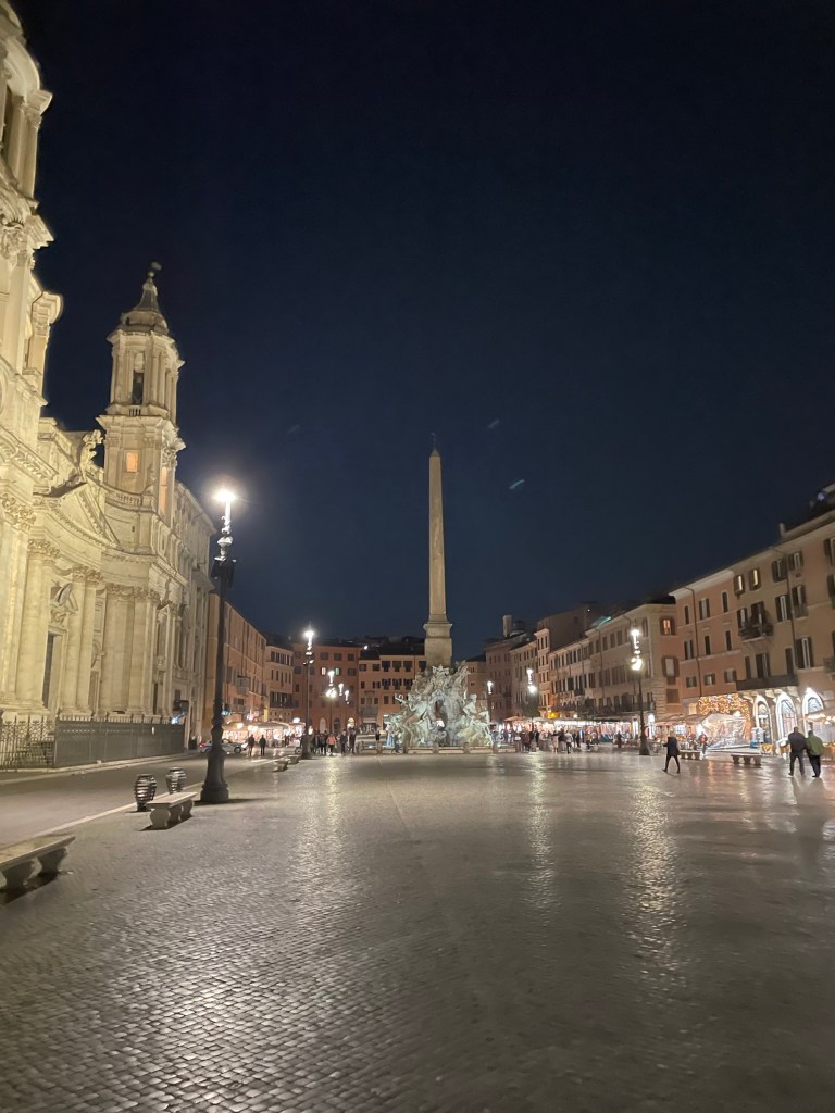 By this time it was getting later and it was pretty chilly outside! We weren’t really dressed the warmest, so after we left the restaurant, we decided to just quick swing by a couple famous plazas that were near the hotel: Piazza Navona and Campo de’Fiori.