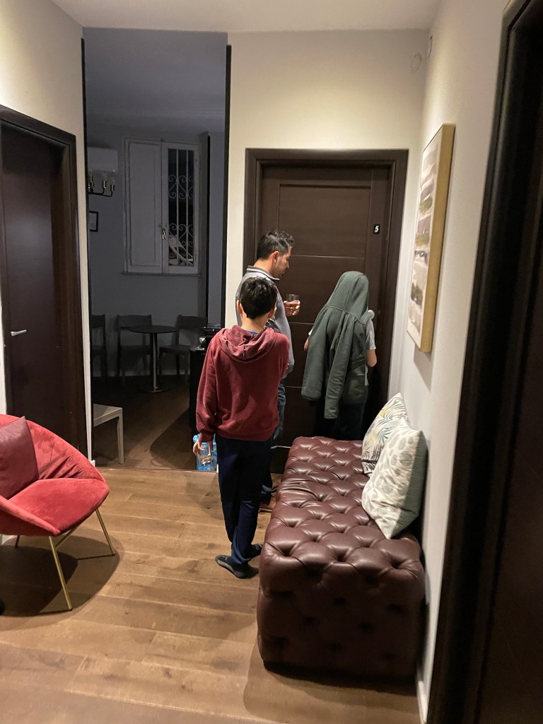 We could have sat in the hotel’s indoor gathering area, but it was pretty late and we didn’t want to disturb others. So we just sat around inside their room: