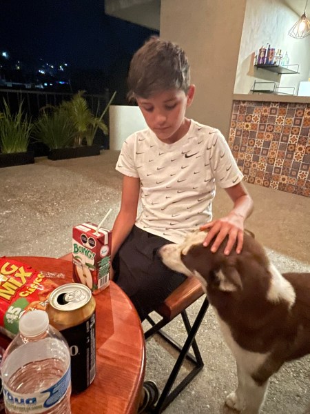 The boys played around with the hotel owner’s dog, a very lively husky.