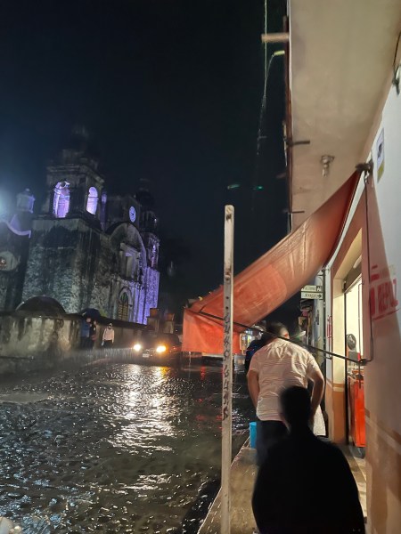 Then we, along with his cousin and family, walked over to the zocalo, or main square. Things were getting very lively, as it was Friday night and lots of tourists were arriving. It was a beautiful evening (for the moment…) and they had a live band playing. We all bought a drink to sip on and just sat on a bench and hung out for a while.