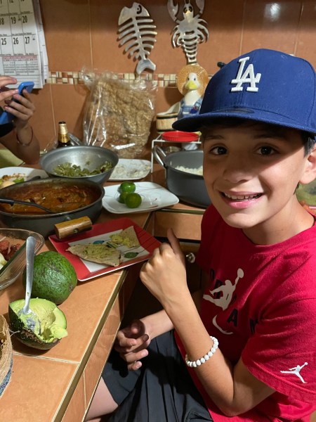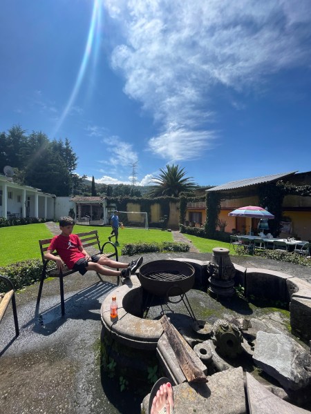 After getting cleaned up for the day, I joined everyone else outside. The kids were playing and his friend’s wife was making chilaquiles and eggs. We also had fresh bread and juice.