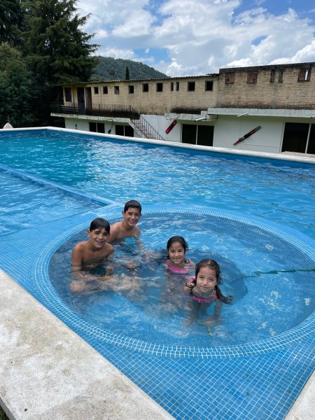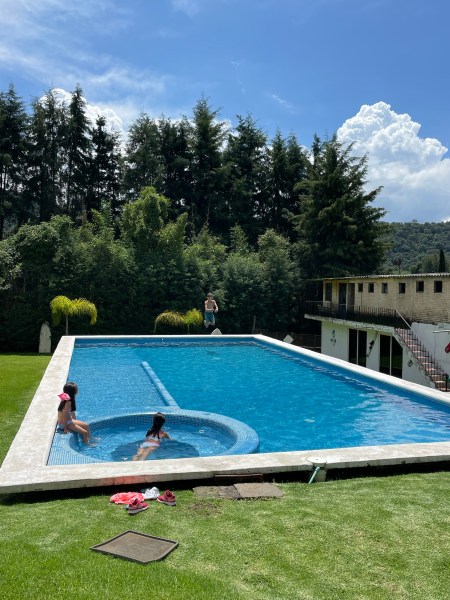 After breakfast/brunch, the kids wanted to swim. We moved to the other side of the ranch, to the pool.