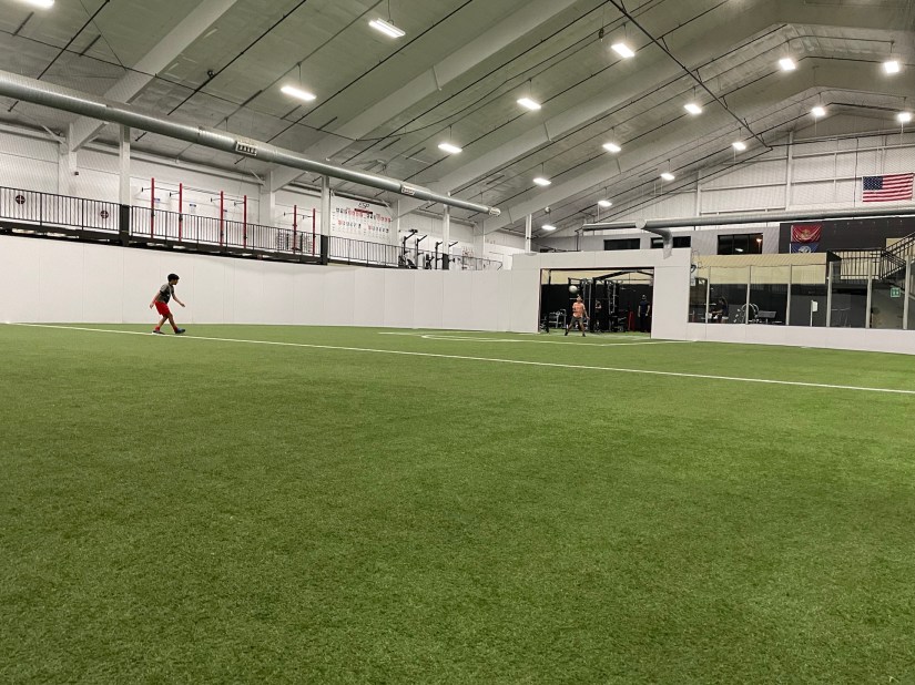 Later, more soccer at our gym’s indoor soccer field: