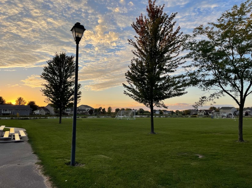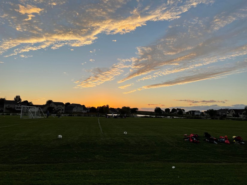 - for the pretty sky last night when I walked to meet Asher after soccer. It was a crisp evening and there was just a touch of the smell of fall in the air….