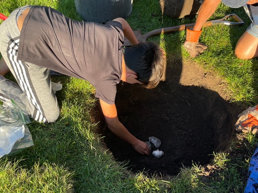 Well, now we had a hole! Ha. I actually love the idea of our beloved furry (and scaled) friends resting eternally beneath our new tree, helping to fertilize the soil and make it grow. The circle of life. 🙂