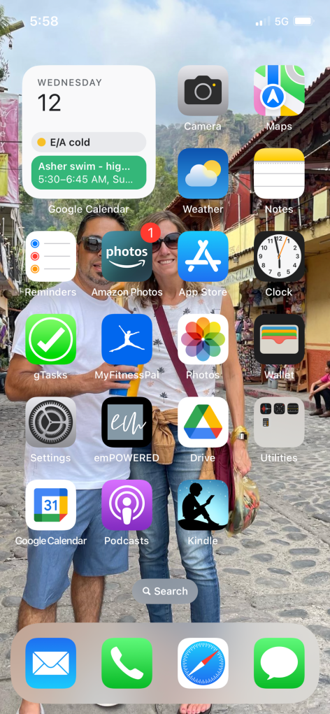 - Made a Page 2 of apps I use frequently and want quick access to (e.g. the soccer team messaging app, the wordpress app, the school app, etc.) but aren’t necessarily daily use apps, either