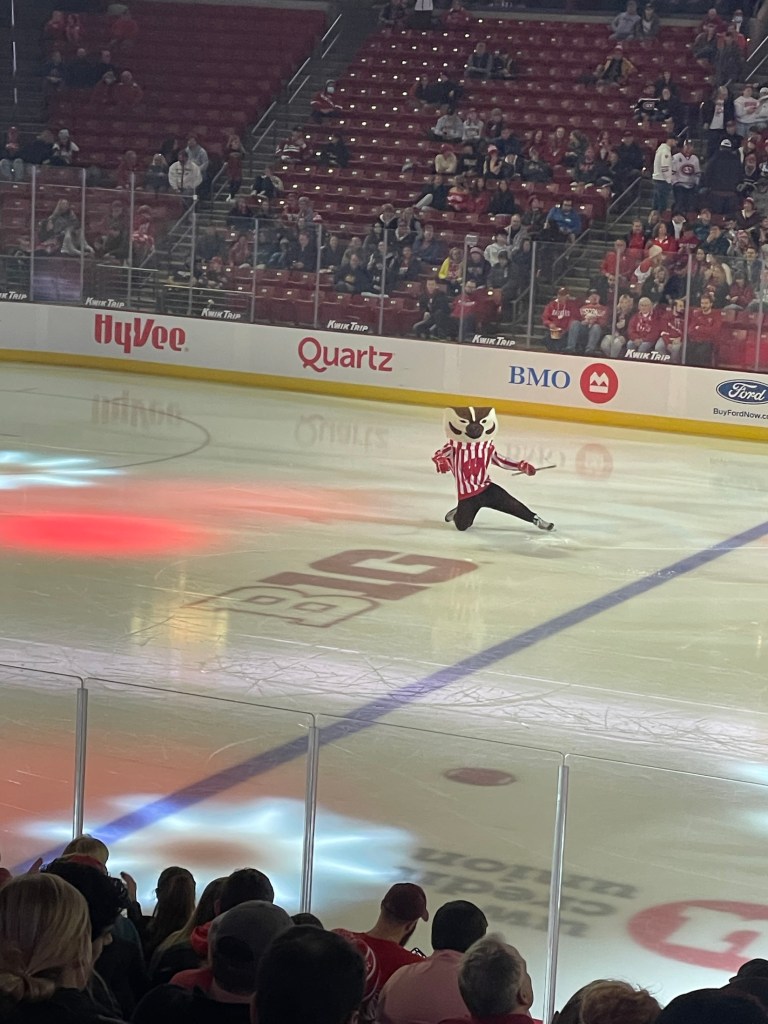 What a guy. Who knew Bucky Badger is also a proficient ice skater.