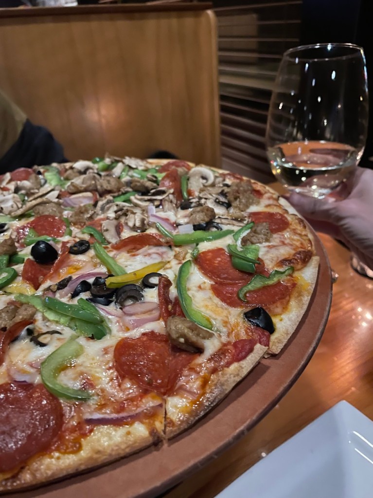 And Saturday night Ivan and I went out alone, to a local place (literally, 2 blocks from home) that we had a gift card for. Pizza and wine and they had live music. So great, so relaxing.