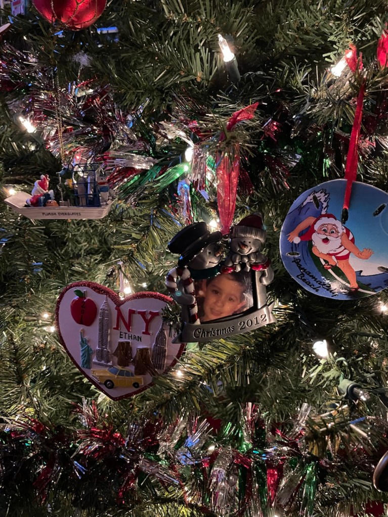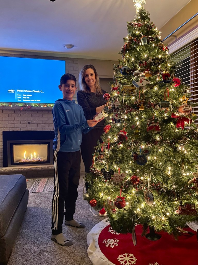 The kids absolutely adore unboxing the ornaments. They couldn’t wait. A majority were either purchased as souvenirs on vacation (I LOVE this tradition!!! It’s the best way to look back on where we’ve been, highly recommend) or represent their current interests (soccer, piano related, swim, etc.).