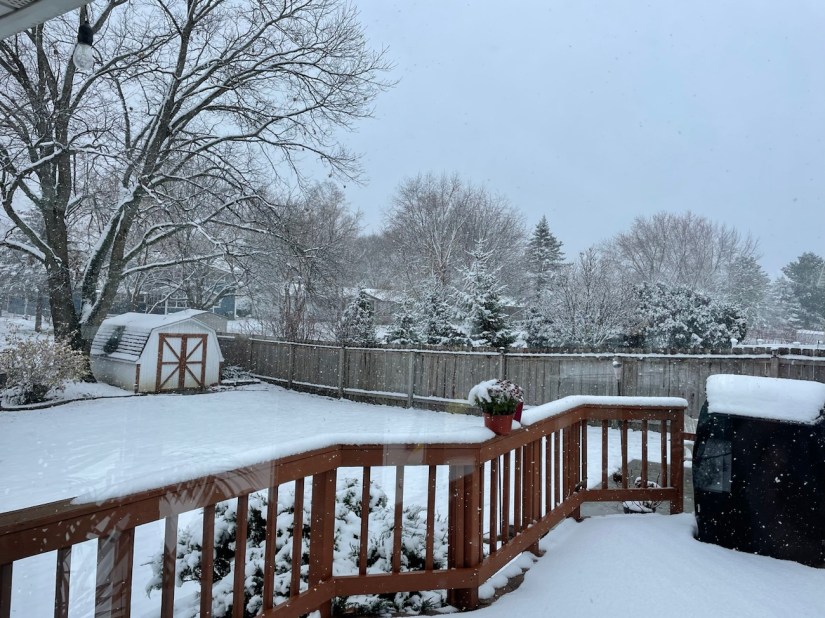 I ended up working in the sunroom all day so I could enjoy watching the snow fall. Yet another perk of WFH.