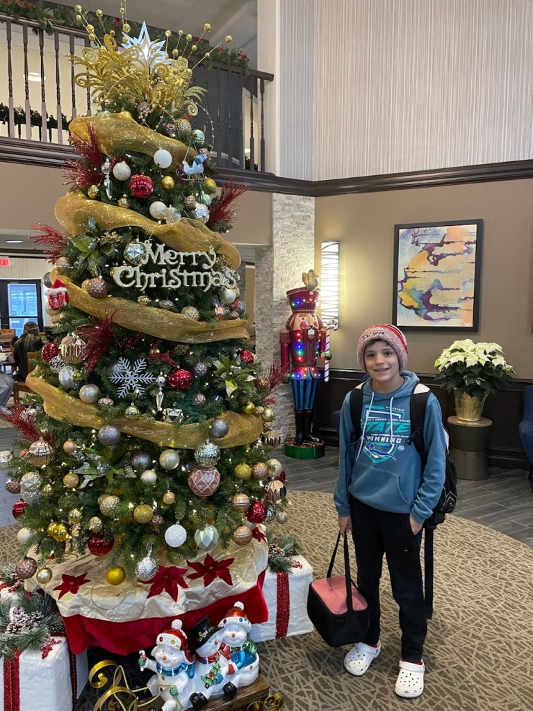 I’m back from the Friday-Saturday swim meet adventure with Asher. We left around 2:30 on Friday. Traffic was okay. I’m not a mega fan of Chicago area traffic, though in fairness, it really wasn’t overly heavy this time. There’s just a lot of lanes and a lot of cars down that way. And a good number of crazy people who drive 95 mph in the right lane as they weave around people, etc. Anyway, it was fine. We listened to Christmas music most the way and Asher was in a really good mood, so I enjoyed the time with him. 🙂