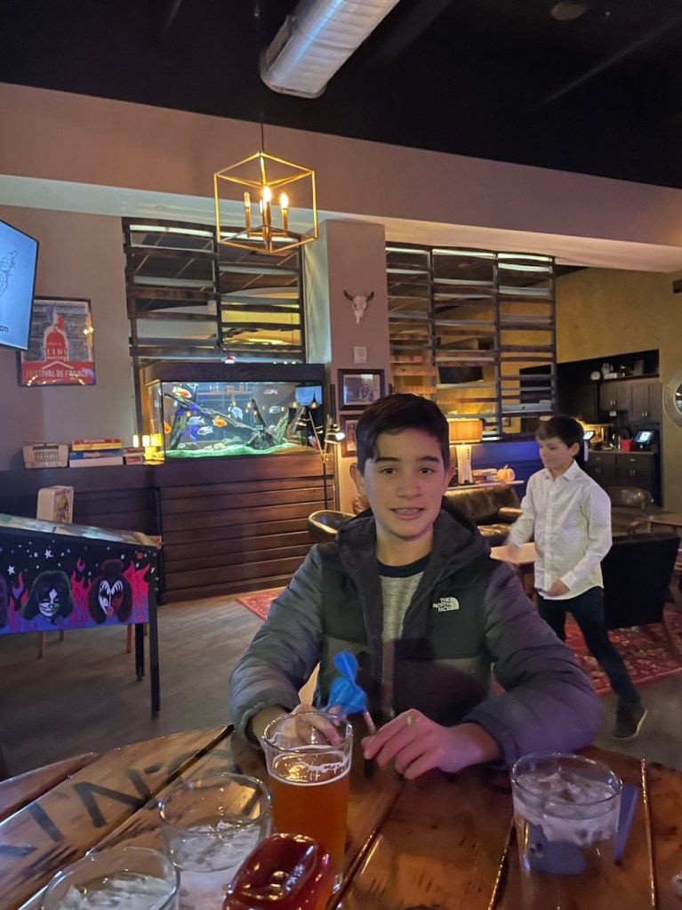 We stopped for a late bite to eat at a place on the near east side, which was not busy at all later on a Sunday night. We sat in the bar and the boys blew through many $1 bills’ worth of darts games. haha.