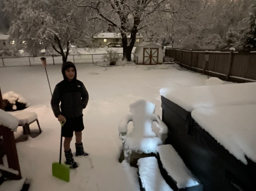 Ethan also cleared the hot tub area for me in the evening, in shorts and boots, because why not. That was nice of him.